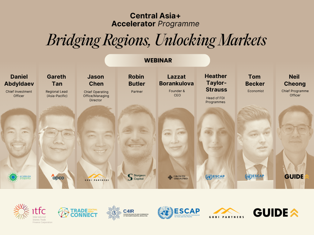 We’d like to thank our incredible speakers for joining us at the Central Asia+ Accelerator Info Day: Daniel Abdyldaev from Accelerate Prosperity – An AKDN Initiative, Gareth Tan from APCO, Jason Chen from Gobi Partners, Robin Butler from Sturgeon Capital, Lazzat Borankulova from Growth Vision Pro, Heather L. Taylor-Strauss and Tom Becker from United Nations ESCAP. Their insights offered valuable perspectives on the tech potential and capital landscape across Asia’s emerging regions.